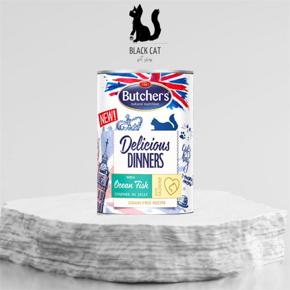 بوتشرز العشاء اللذيذ قطع سمك البحر في جيلي طعام رطب للقطط 400 جرام