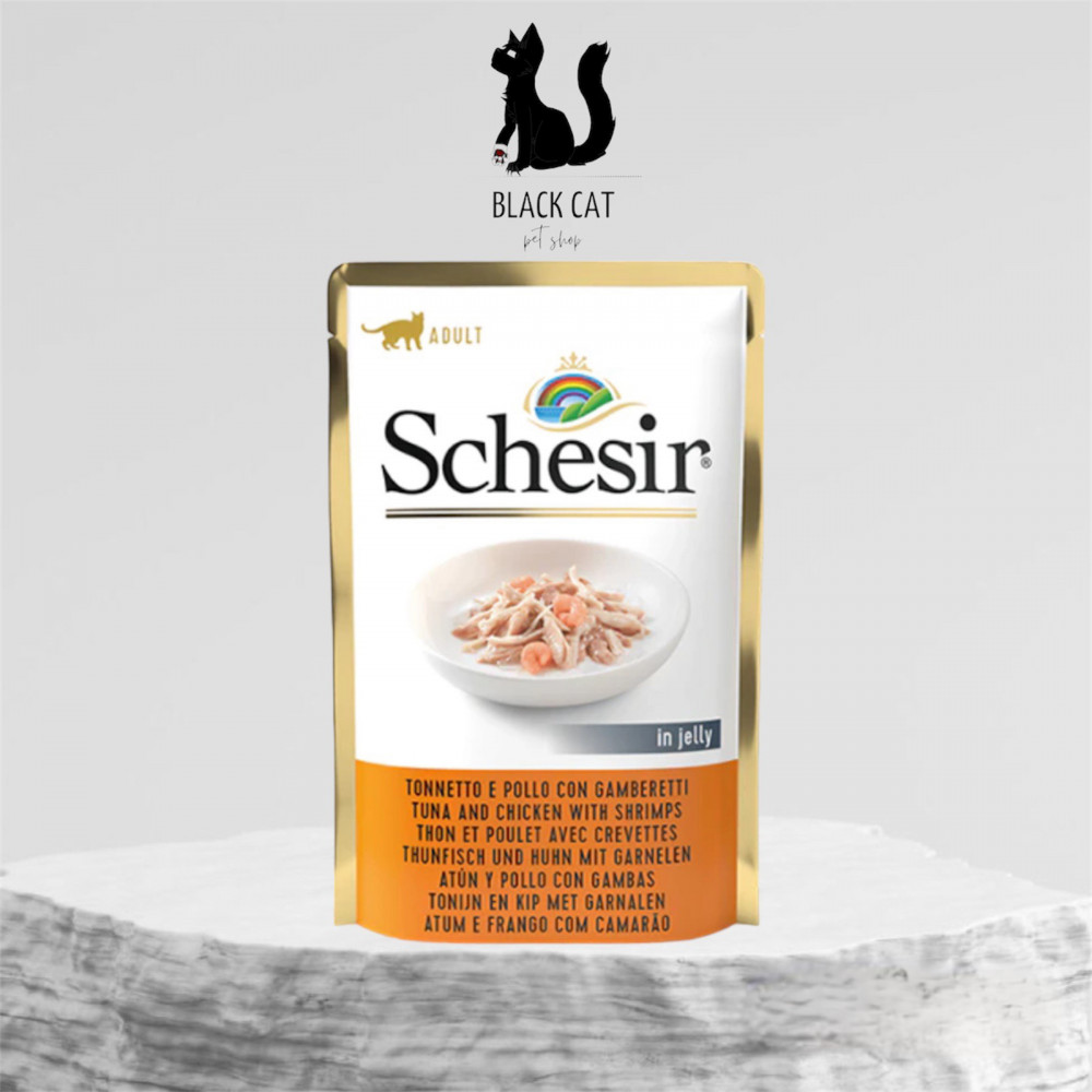 شيزر طعام رطب للقطط البالغة بنكهة التونة والدجاج والجمبري مع الجيلي 85 جرام