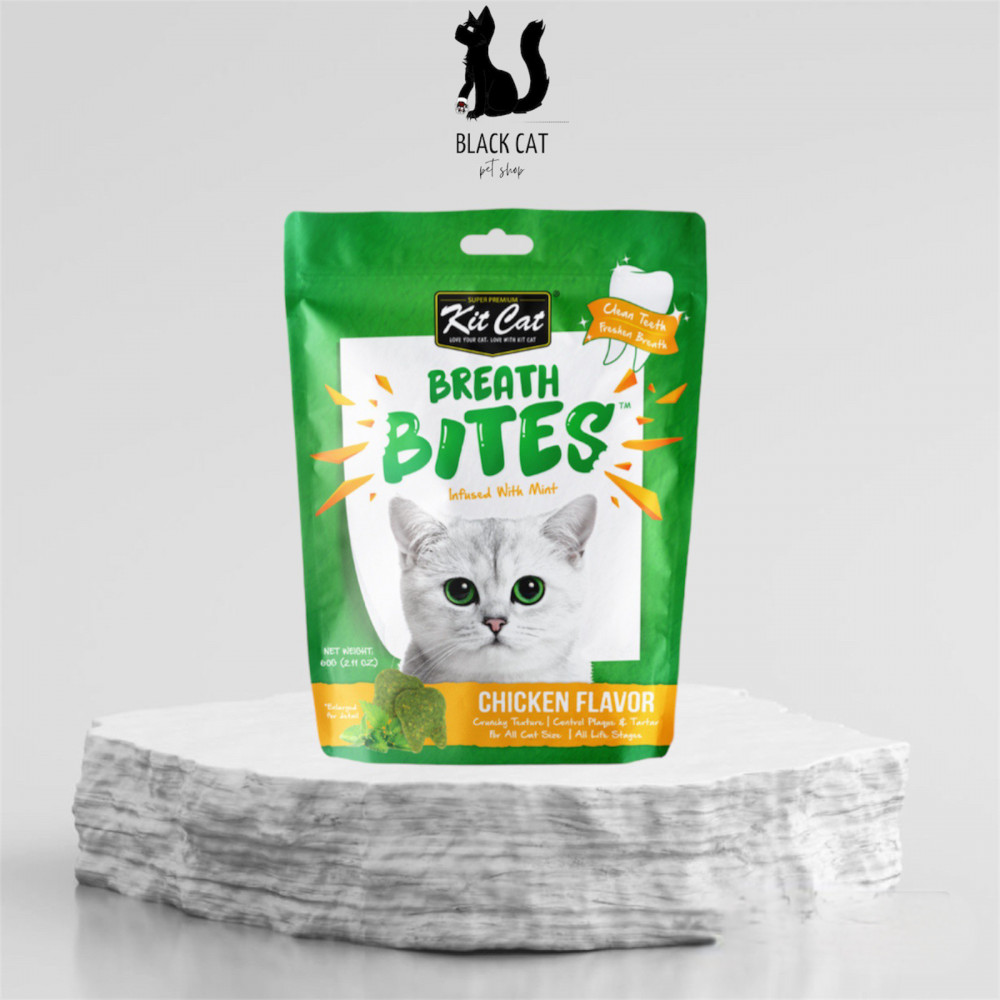 - لم يكن تنظيف أسنان قطتك أسهل من أي وقت مضى مع كت كات بريث بايتس بالنعناع .